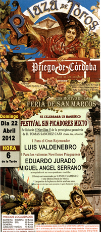Con motivo de la recuperada Feria de Abril en Priego, el próximo domingo día 22 de abril se va a celebrar en el Coso de las Canteras un festival taurino sin picadores, organizado por la Peña Taurina Miguel Ángel Serrano y en colaboración con la ACPH y el Ayuntamiento de Priego.