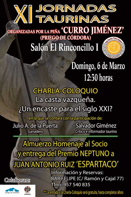 Una charla coloquio a cargo del ganadero Julio de la Puerta; un almuerzo homenaje al socio y la entrega del premio Neptuno, conforman la XI Jornada Taurina