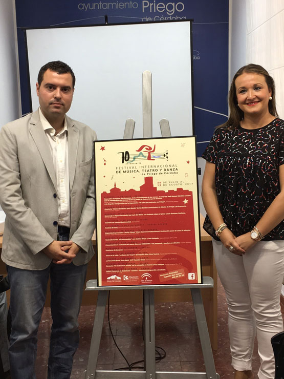 El alcalde José Manuel Mármol y la presidenta del Área de Cultura, Sandra Bermúdez, presentaron el pasado día 19 de Junio la LXX Edición del Festival Internacional de Música, Teatro y Danza Priego de Córdoba, que cuenta