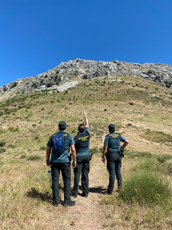 Una vez en las inmediaciones, los guardias civiles iniciaron la búsqueda a pie, debido a la orografía del terreno, tratándose de una zona muy escarpada y de difícil acceso, lográndose localizar a los dos senderísta atrapados en la zona alta del Pico de la Tiñosa, a unos 1.500 metros de altitud.