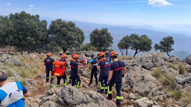 Ante ello, los guardias civiles tras subir a pie por el sendero de las Tres Cruces y continuar por todo el collado de la Sierra Alta de Rute, teniendo que sortear acantilados y formaciones rocosas debido a lo abrupto del terreno, lograron localizar a la persona accidentada junto a su hermano, la cual no podía andar debido a una caída.