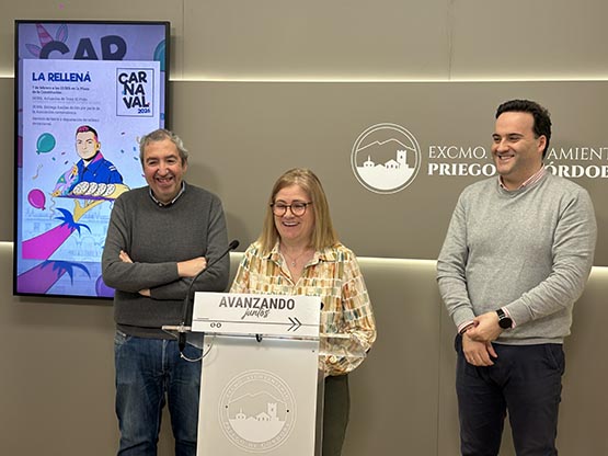 El Ayuntamiento de Priego de Córdoba ha presentado oficialmente el Carnaval 2026 en una rueda de prensa, en la que se ha dado a conocer el programa de actividades que se desarrollará entre el 7 y el 15 de febrero. En la presentación han intervenido el alcalde de Priego de Córdoba, Juan Ramón Valdivia; el concejal de Festejos, Antonio Navas; y la presidenta de la Asociación Cultural Carnavalesca de Priego de Córdoba, Mari Carmen