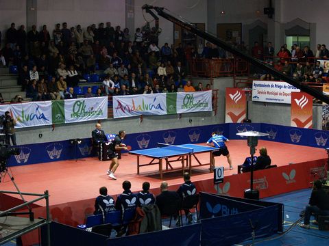 El partido comenzaba con el choque entre Carlos Machado y Jian Jun Wang. El jugador oriental se hacía con los dos primeros sets (6-11 y 8-11) pero Machado ponía emoción en el partido igualando el marcador en dos magníficos sets (11.8 y 11-5). De nuevo el jugador del Charleroi se rehacía y acababa adelantando el juego con una victoria por 5-11. El segundo choque enfrentaba a Constantin Cioti y Dimitrij Ovtcharov. El alemán conseguía el primer set de forma muy ajustada por 12-14 y también se apuntaba el segundo de forma más clara por 7-11. Cioti acortaba distancias (11-7) pero el jugador del